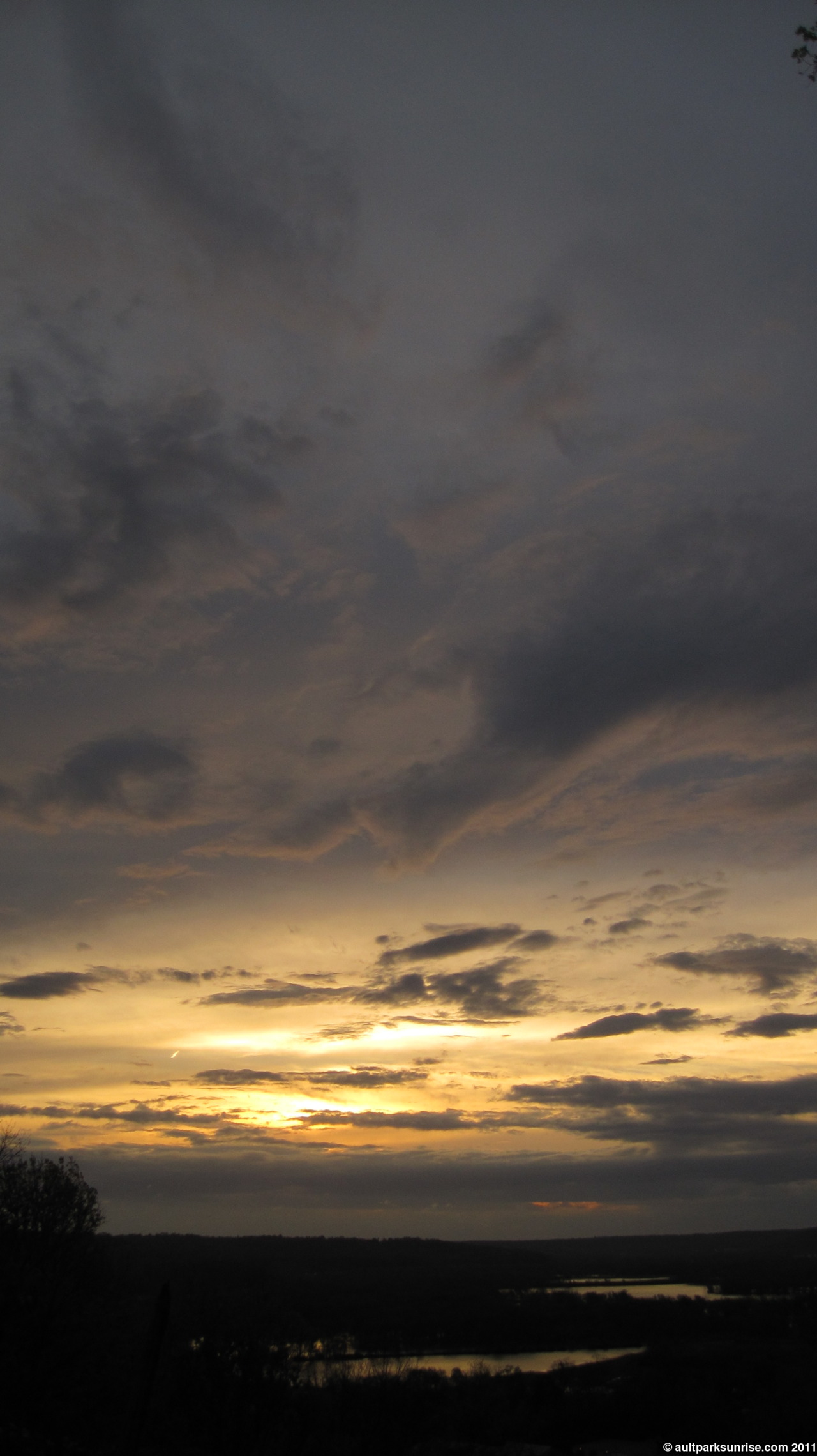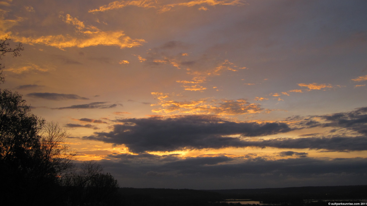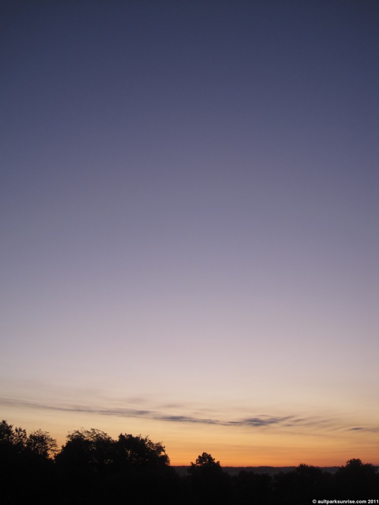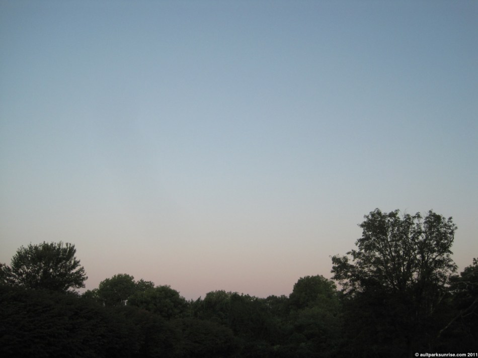 I knew something wasn’t right when I walked into the kitchen. I forgot to make my coffee the night before, so I filled up the kettle and set it on the stove in a sleepy haze. I cracked the window open to get a smell of the morning air and listen to the bird report. The birds were chirping loudly, and I looked up and saw a dark, deep blue sky. Good. Dark and… wait, deep blue? What happened to the gray? I panicked a little bit and walked out side. Sure enough, the sky was almost cloud free, save for what I could see along the horizon behind the trees. Now, because we’re only about 15 minutes before sun rise and the sky is dark, but clear, this can only mean one thing. A clear sky with a low-lying cloud bank sitting on top of the horizon, right? “This could be interesting”, I thought to myself. I checked the time – I should have left 5 minutes ago if I wanted to casually stroll up to the park and arrive with some time to spare. I rationed out the water in the kettle so that I had just enough water to fill my thermos, and gathered up everything I needed for the morning.