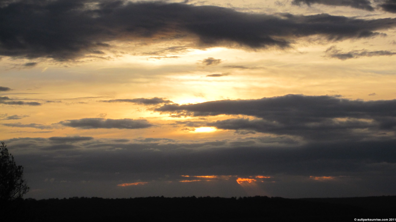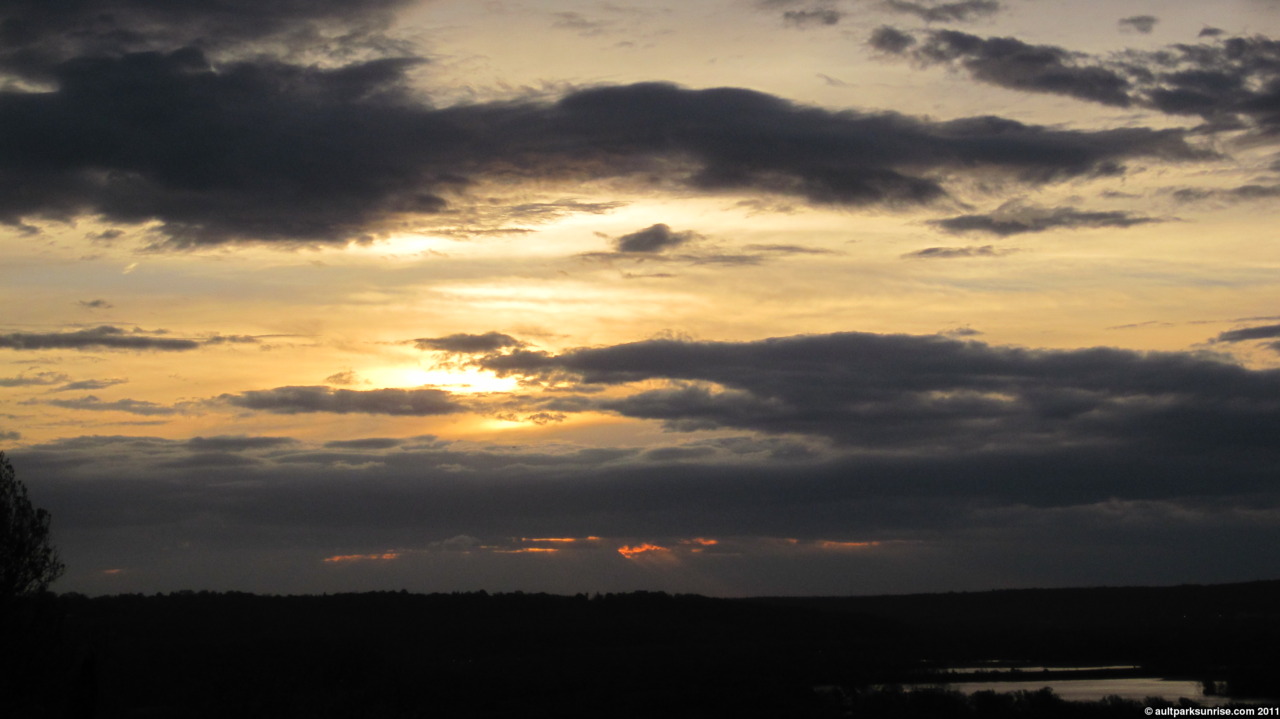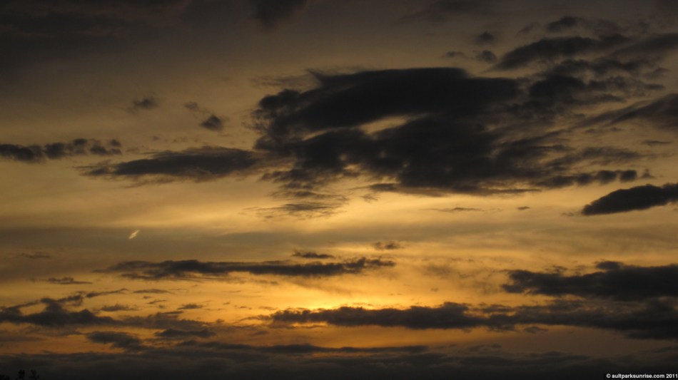 There are two parts to a sun rise like this. The first part is that the atmosphere doesn’t get colorful until about 10 minutes before the sun’s true sunrise time because the clouds are blocking the area just above the horizon.
