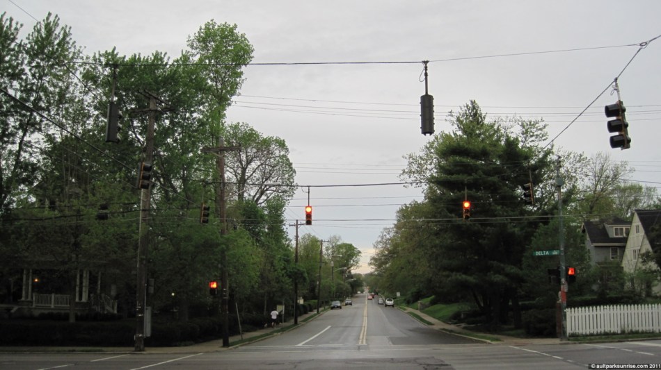 I took the chance to snap a picture looking west on Observatory across Delta Ave. This is just north of Mt. Lookout Square. Behind me is Ault Park and the surrounding residential neighborhood. Observatory runs a parallel east/west with Erie Ave and provides a popular flat stretch for the local runners (and part of the Flying Pig route), considering most of the area is made up of unforgiving hills.