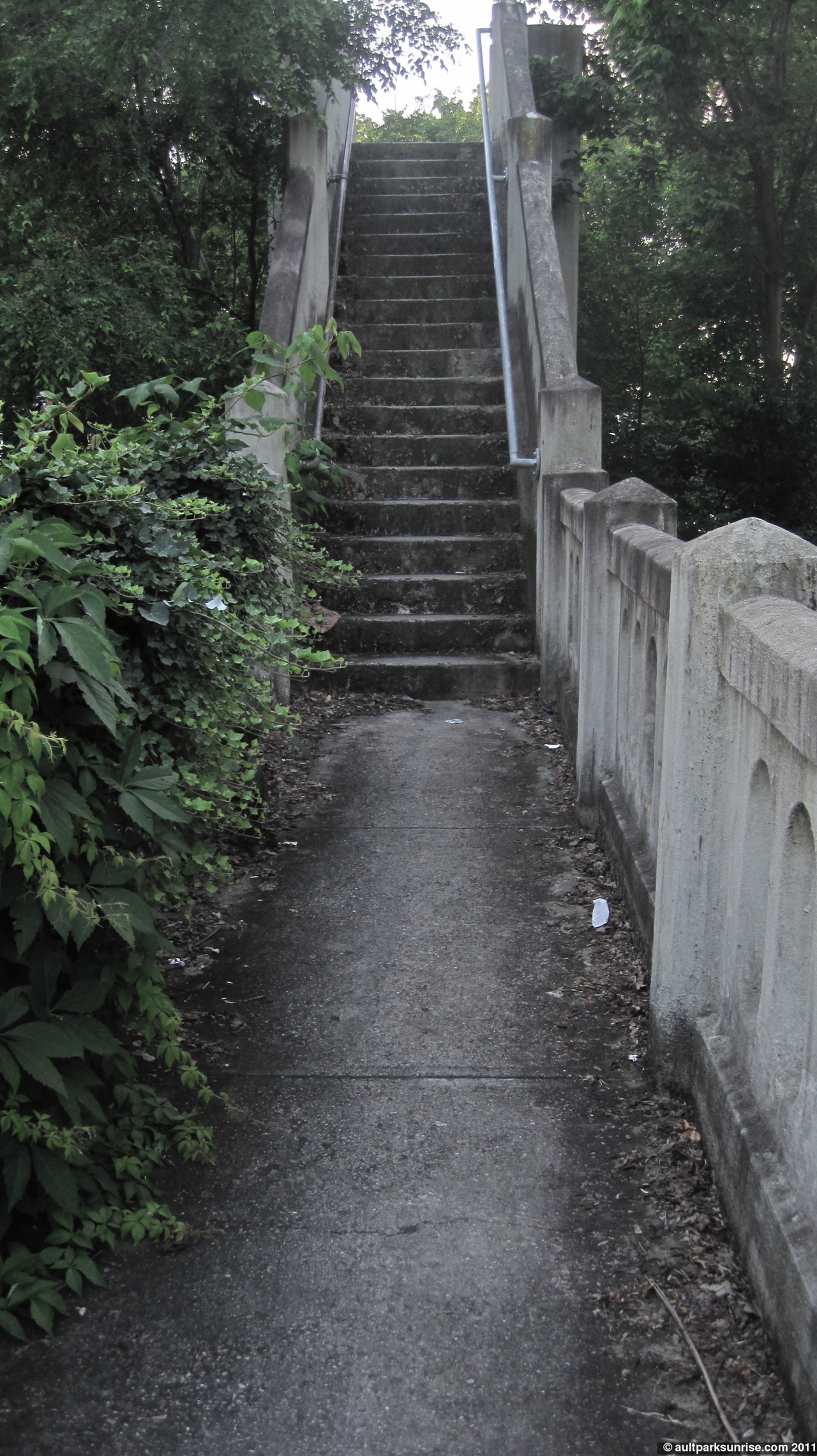 - Over the cement stairs, across the rail road, and over to Armleder Park