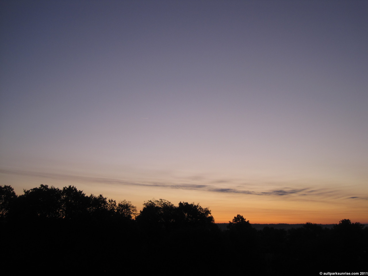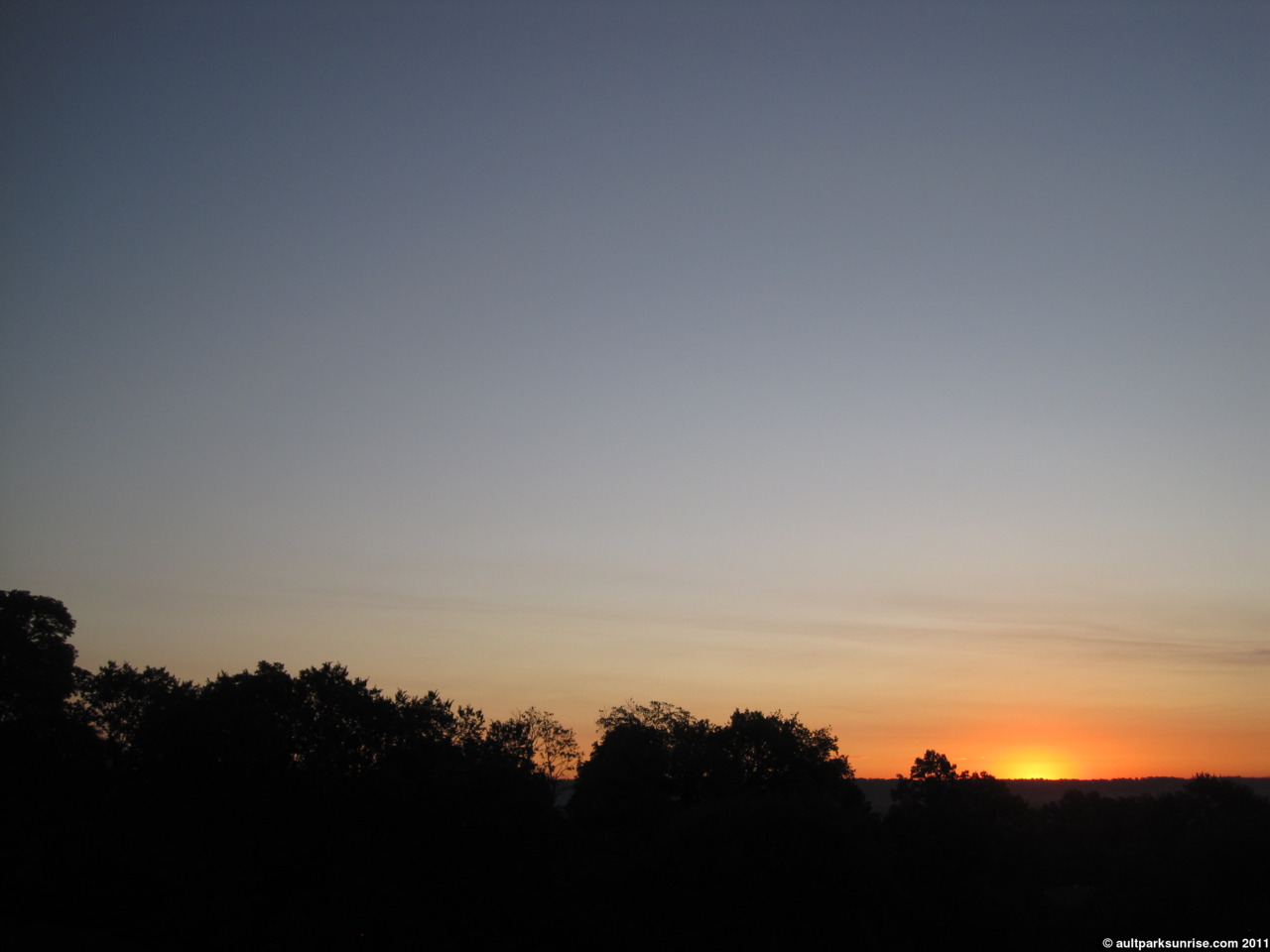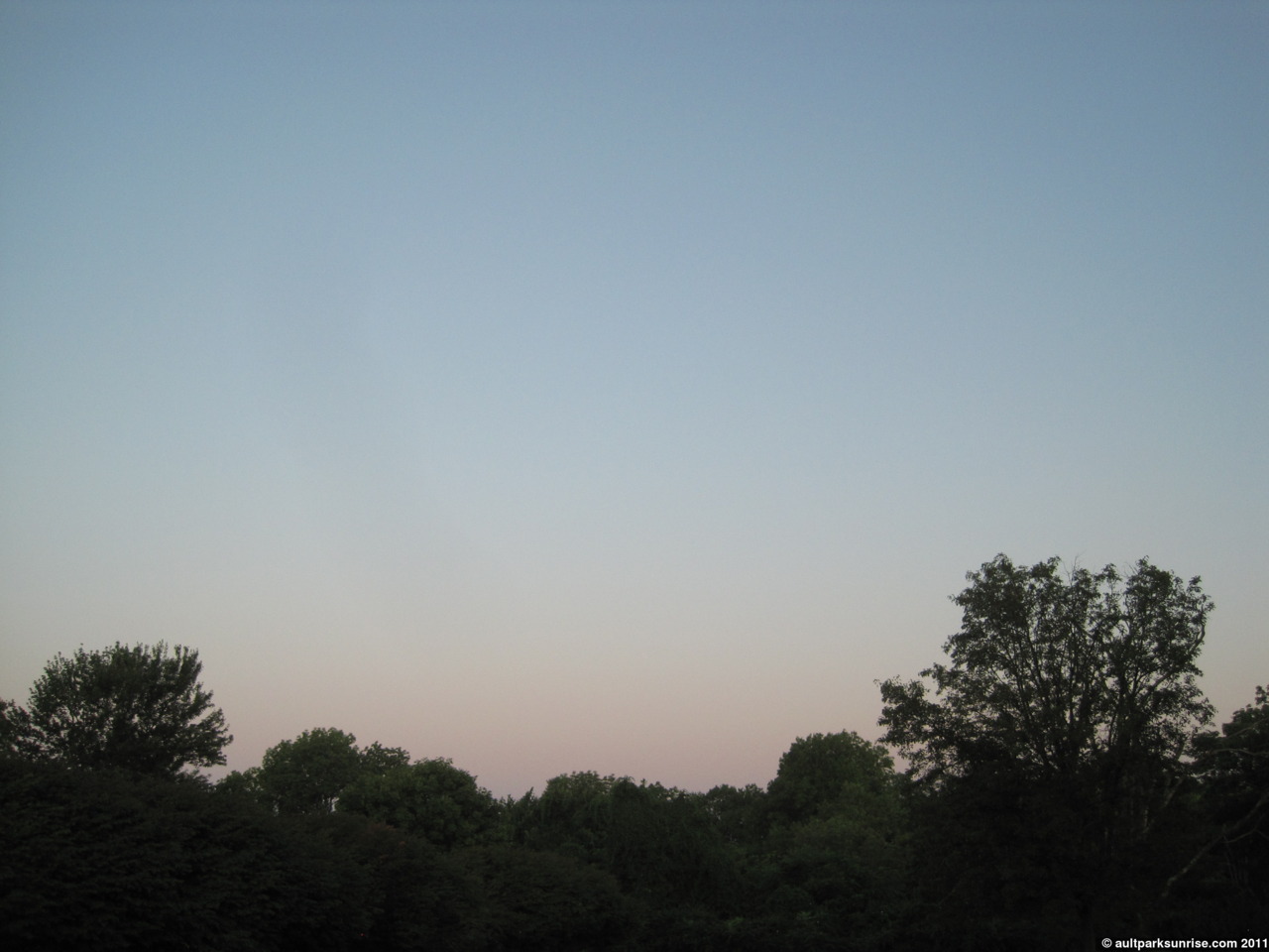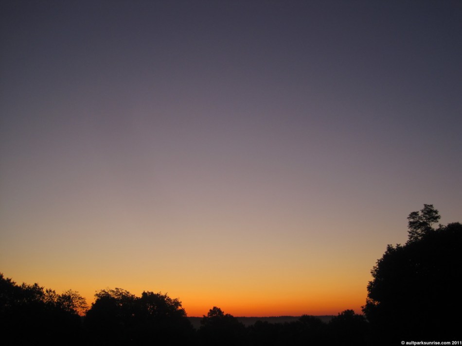 This is the sky 20 minutes before sunrise. Deep orange fading into a gradient blue, a color palette that I expect to see 20 minutes AFTER sunrise on a hot humid day.
