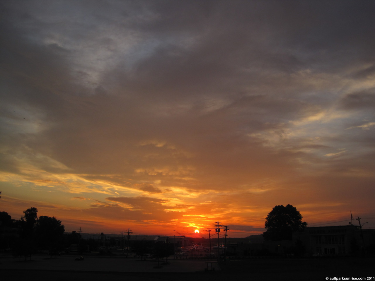 Orange sunrise coming up. This was taken about fifteen minutes after official sunrise time.