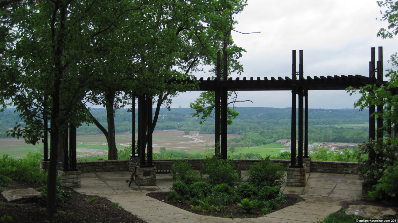 The central overlook in Alms Park looks right down into Lunken Airport and provides probably the best vantage point to seriously watch the planes land and take off from 250ft above the basin. I biked around the small loop in the park, and even went down into the off-the-normal-path reserved area where there is a small shelter. More after the jump