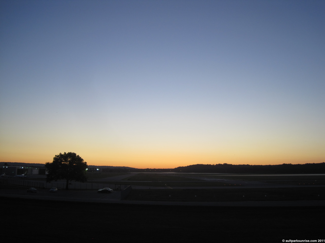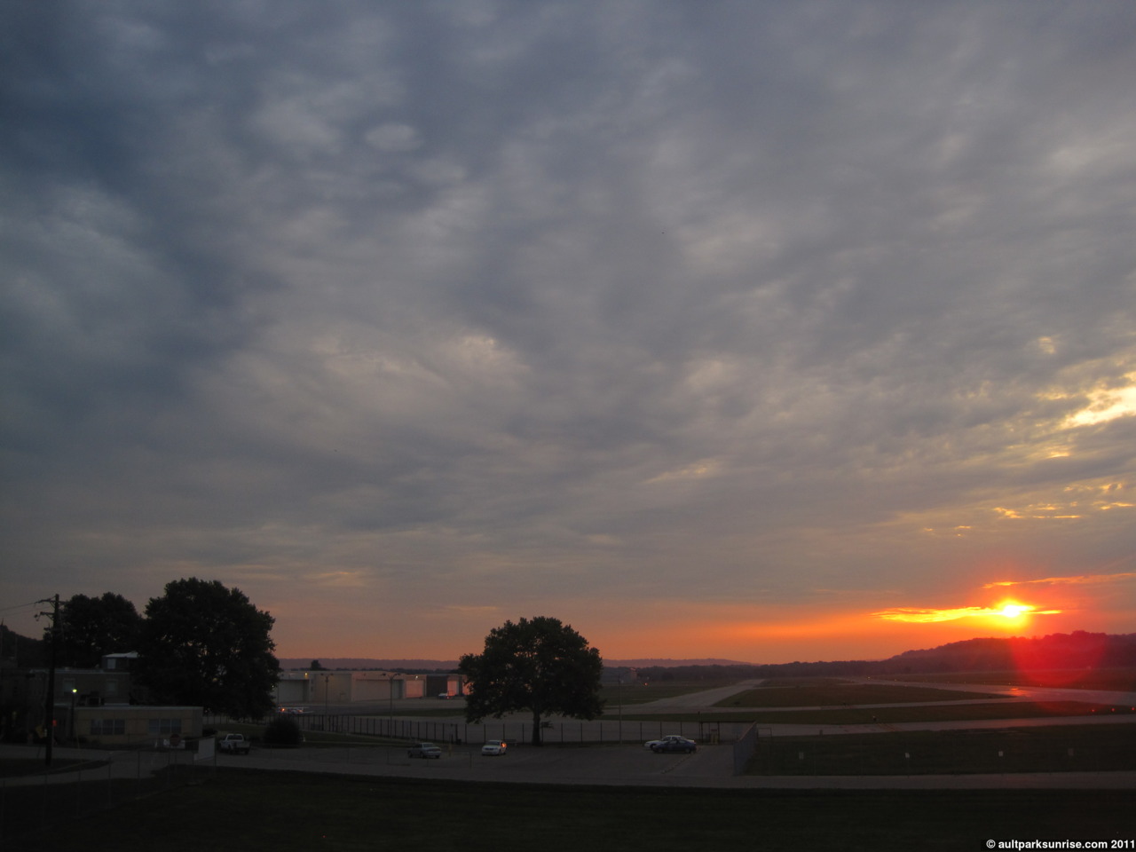 Lunken Airfield with the sunrise sky above it. With the sun being so bright it was worth taking the time trying to take a picture that did not include the sun directly.