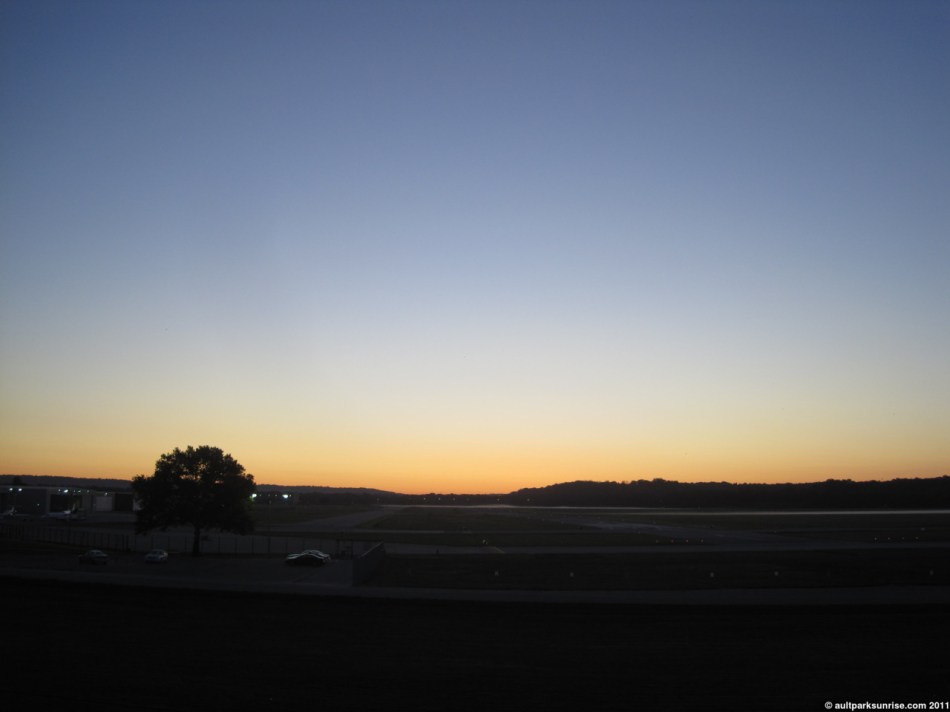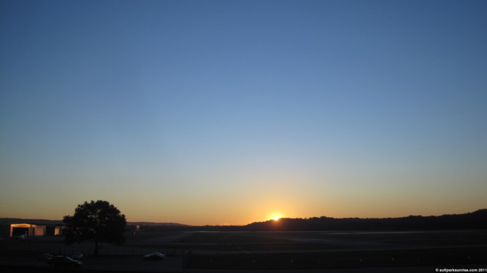 I rode down Mt. Tusculum into East End and arrived at Lunken Airfield at about 6:35am. The sun has crept further to the right along the horizon. Interestingly enough, this means that at Ault Park’s Heekin Overlook, the sun is coming into view without being obstructed by the ridge to the left. At Lunken Airfield the sun has moved from the clear opening on the horizon to behind the ridge to the right. Although, to be fair, there is no bad location down at Lunken Airfield! Due to the sun coming up behind the ridge, “true sunrise” was delayed by about 18 minutes. This gave me a full 20 minutes to enjoy the subtle lighting of the beautiful clear blue sky over Lunken Airfield. I haven’t been this early to a sunrise for a long time, I’m embarrassed to say, so it was a great change up in the routine.