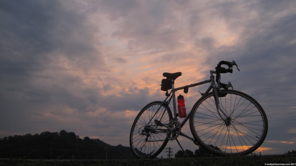 When I first woke up this morning, all I could think of was how sore I was going to be. Last night I participated in my first ever “group ride” with the friendly people over at Element Cycles in Mt. Lookout / Hyde Park. I found out about the event only two hours before it started. Yesterday afternoon I was browsing through the Cincinnati bicycling blogosphere when I came across an announcement by Queen City Cycles (and Urban Cincy) about how May is “Bike Month”. There are going to be all kinds of awesome events, including Bike+Brew, an event that involves a bike pub crawl through the bars in over the rhine, down town, and newport / covington kentucky. It sounds like a blast. Along with the announcement about Bike+Brew there Queen City Cycles had a picture of the official Bike Month t-shirts. I saw that one of the locations to pick up a t-shirt was at Element Cycles, which just so happens to be in my neighborhood. I remembered passing the shop just last Sunday for the first time so I decided to check out their website / facebook page. As it turns out they do Thursday rides @ 6pm. Being familiar with the weather for this week and realizing that yesteday was probably the only beautiful day (and the only clear sunrise!) I sucked it up and decided to check out the event, for better or worse.