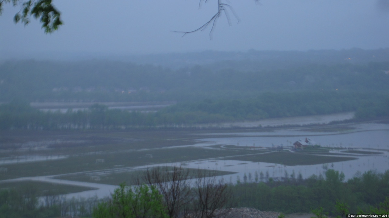 A picture for the timelapse. The flooded prarie is starting to creep up the hill to the office buildings.