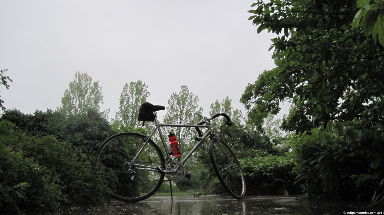 A new front rolled through last night. Sometime during the night I remember waking up to the loud crack of thunder. Fortunately by the time 6:15am rolled around, the violent part of the system had moved on and we were left with a quiet peaceful spring shower. The ride up to the park was filled with the surround-sound acoustic profile of water falling from the trees and guzzling storm drains. There was little wind and the rain was light enough to not cause me too much mis-comfort, while being strong enough to ensure I was the only early morning pedestrian.