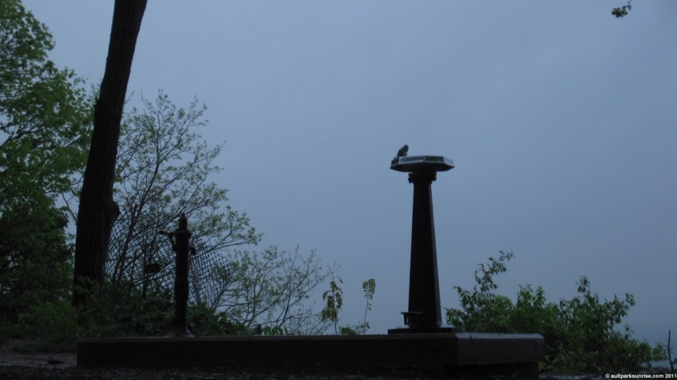 You can tell today is a Monday. I got all the way up to the park before I realized that I had forgotten the camera. The last time this happened, the sun rise was so spectacular that I had to make do with my camera phone. This time, however, the sky was overcast. This meant that a difference of 10 minutes didn’t really matter as much. I whipped back home, all down hill, and grabbed the camera from the table. The second ride up the hill wasn’t as hard as the first; being warmed up helps substantially when you’re on a bike.