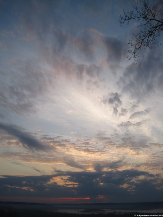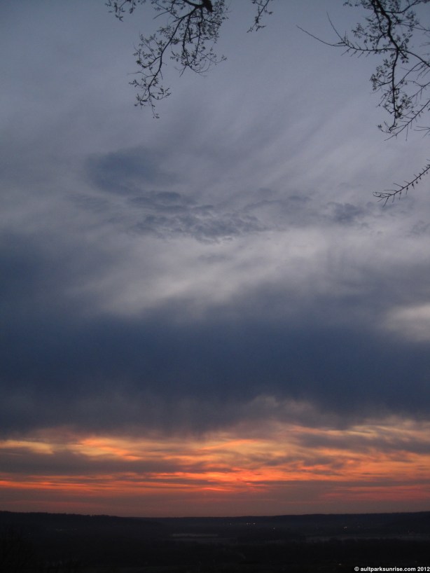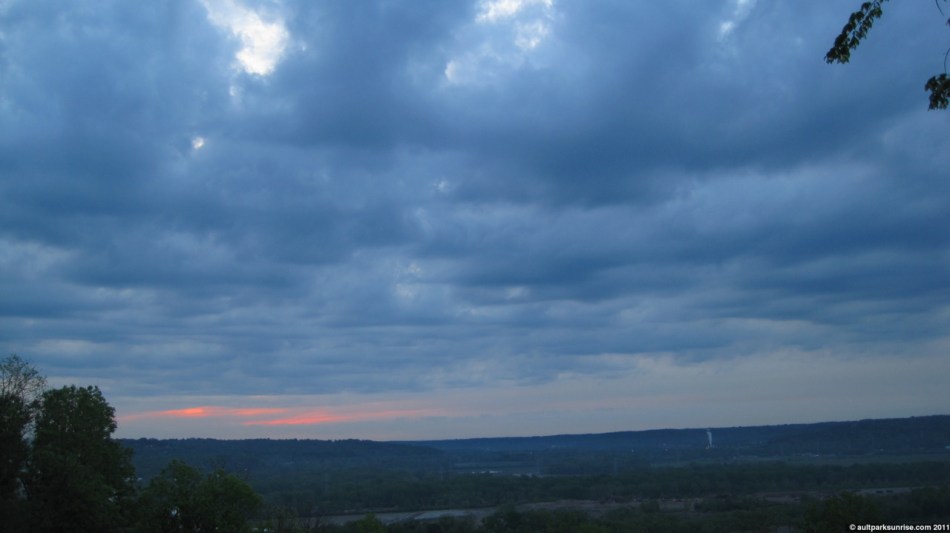 I’ll admit, I was pretty darned excited about the sunrise this morning. The atmosphere had a rich mix of cloud species with an open atmosphere behind it. It had all the pieces needed for a truly unique and majestic sunrise. In the end, it was a pretty neat sunrise but none of the early magentas, pinks, and purples made a very strong appearance. There was a thick low lying cloud bank that blocked most of the early rays of light before they could penetrate into the upper atmosphere above Ault Park.
