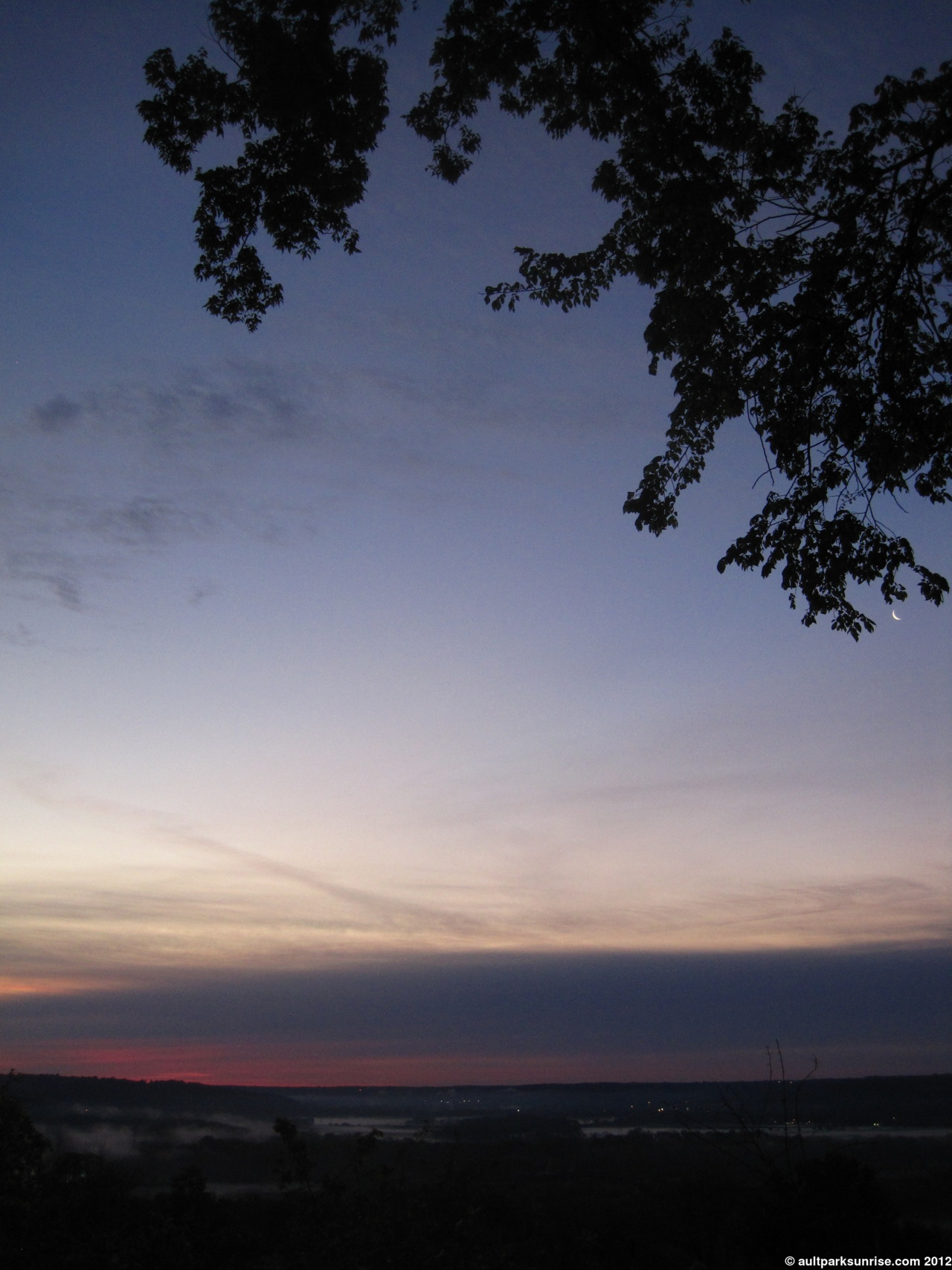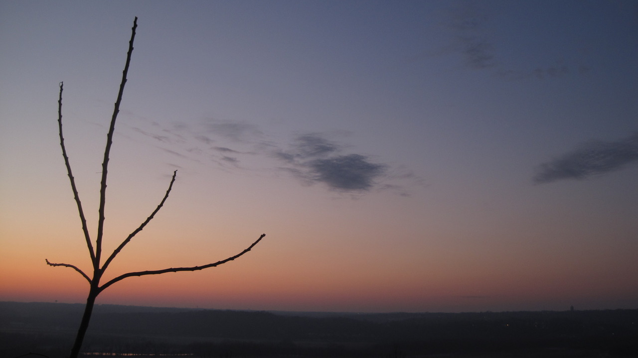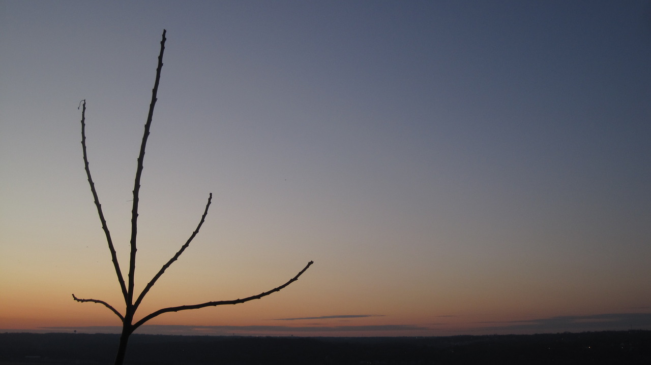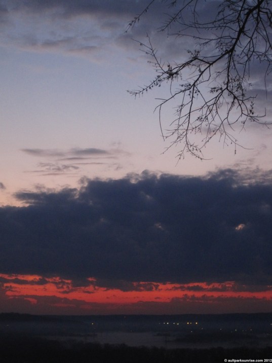 Here we see the young Tree of Heaven down by the overlook. At twilight the sky was opening up with light but the lower atmosphere was still rather dark due to the cloud bank that was blocking the early rays of twilight.