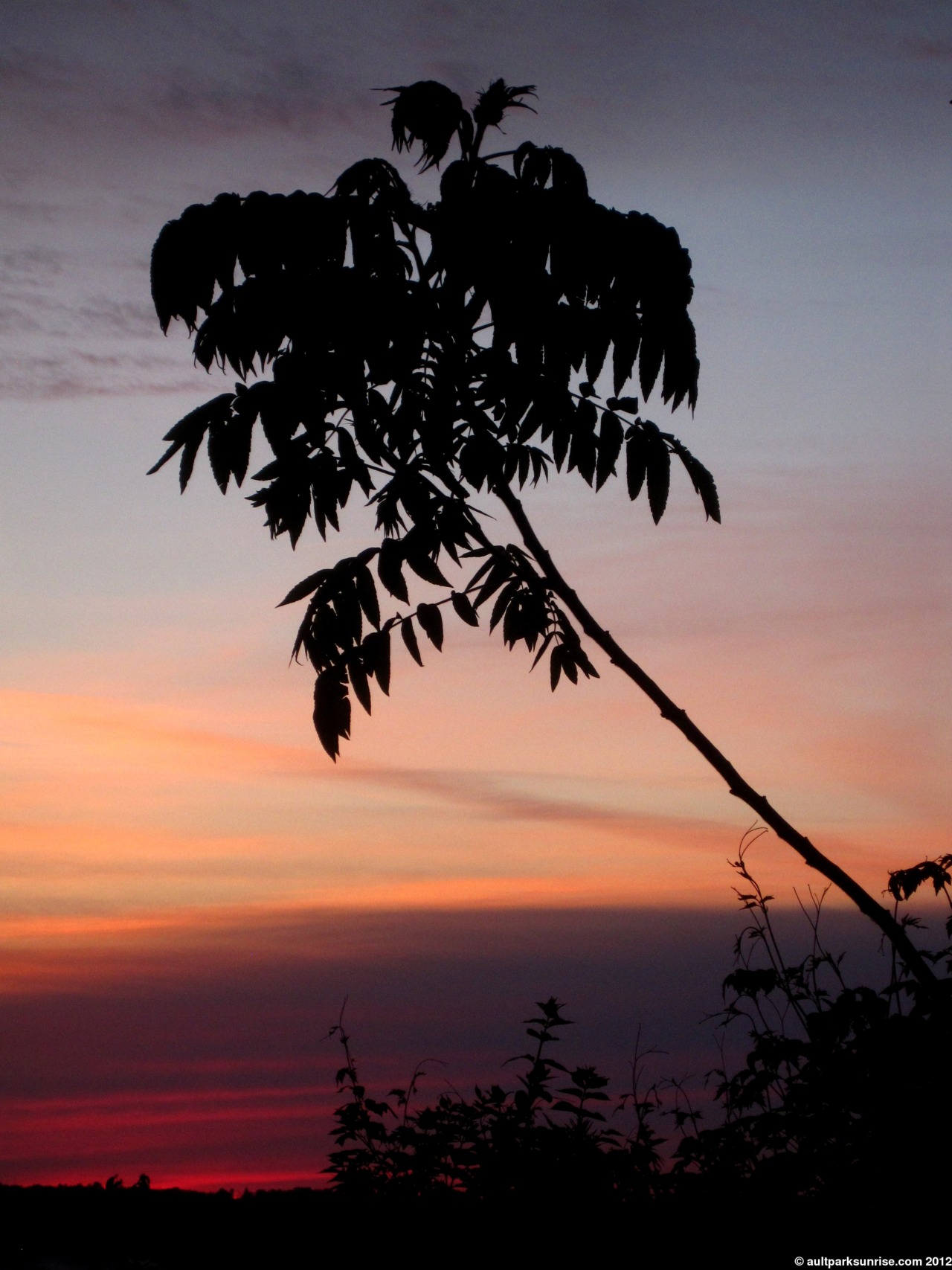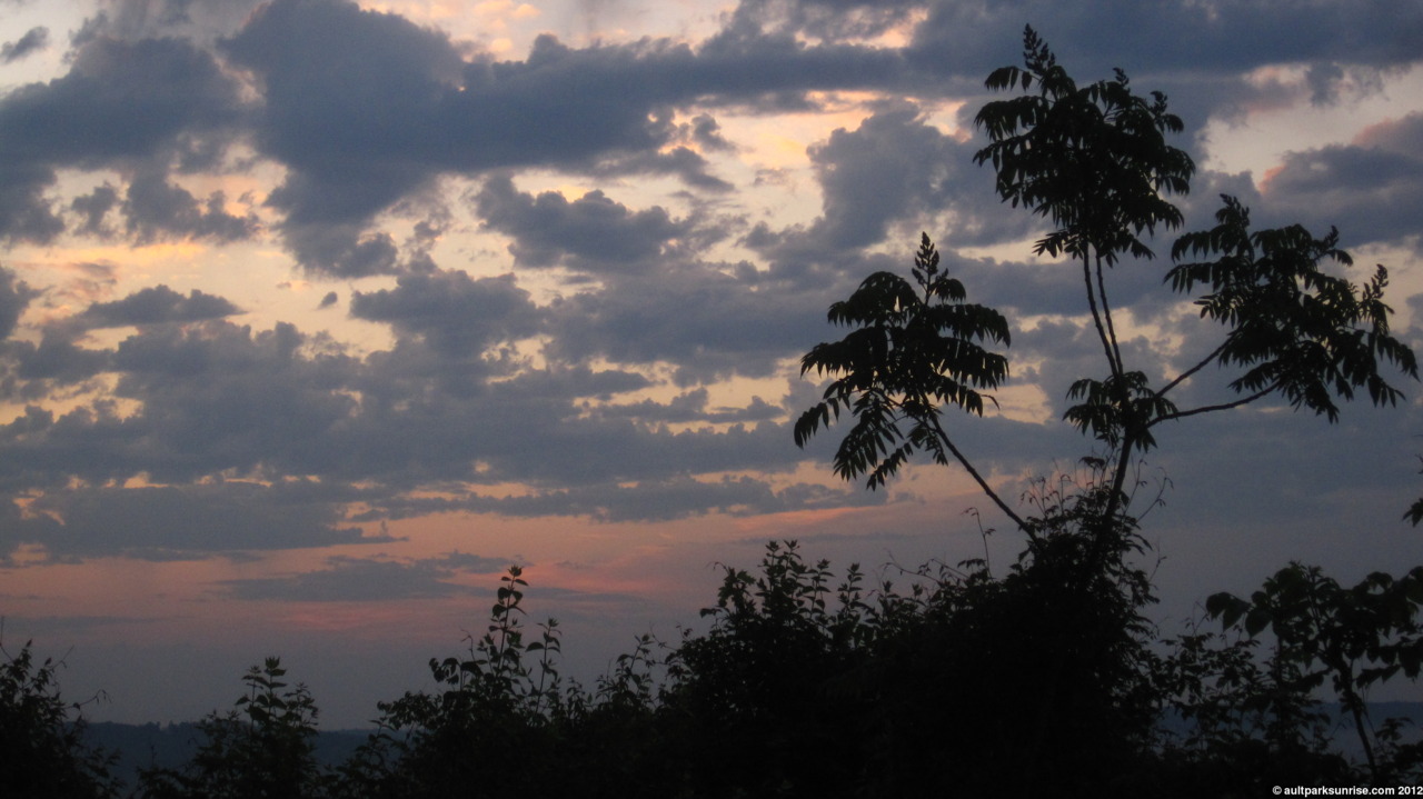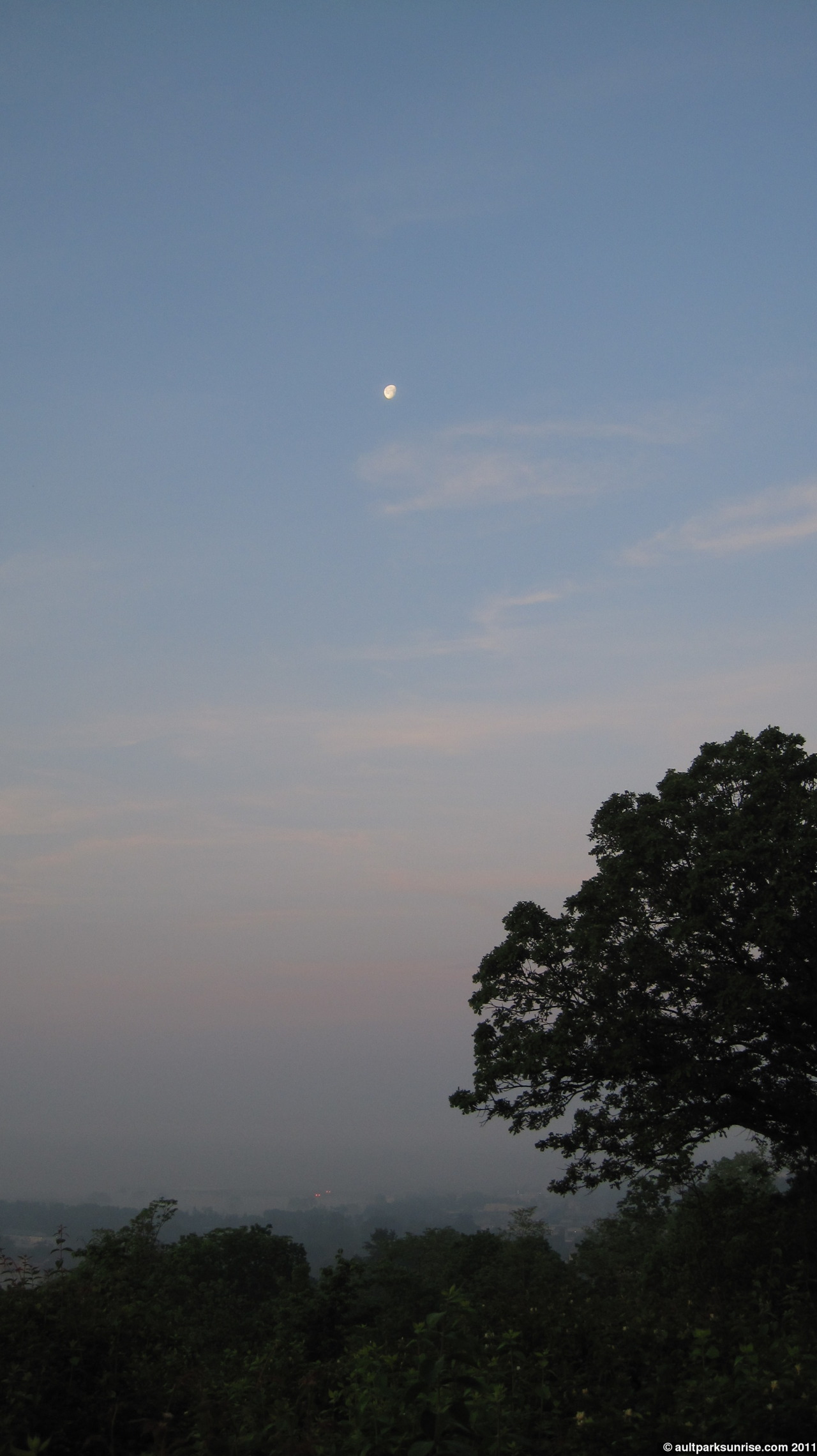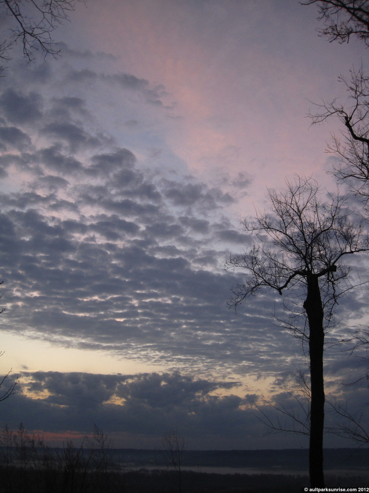 Here we see the young Tree of Heaven down by the overlook. At twilight the sky was opening up with light but the lower atmosphere was still rather dark due to the cloud bank that was blocking the early rays of twilight.