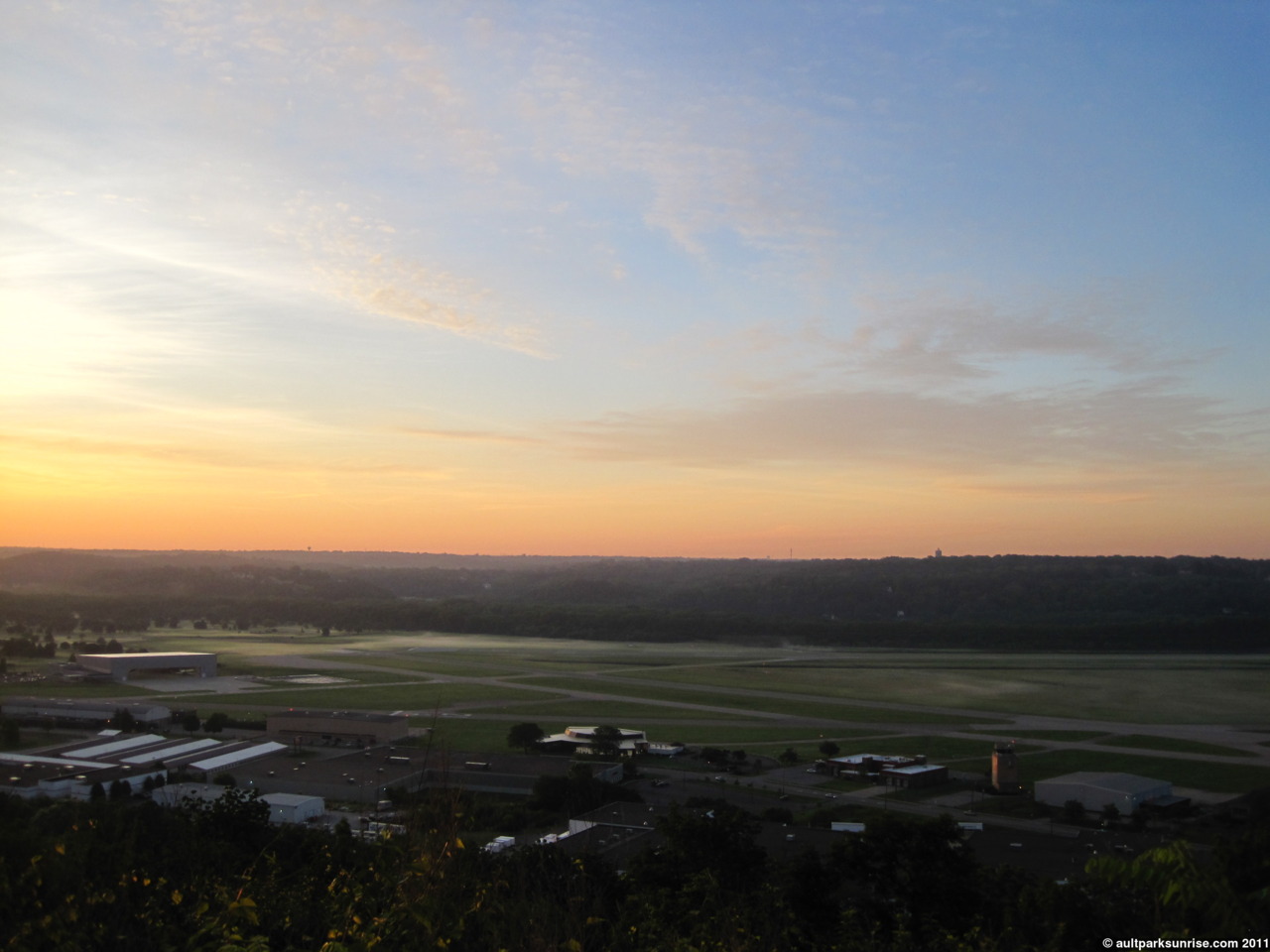 Lunken Airfield with the sunrise sky above it. With the sun being so bright it was worth taking the time trying to take a picture that did not include the sun directly.