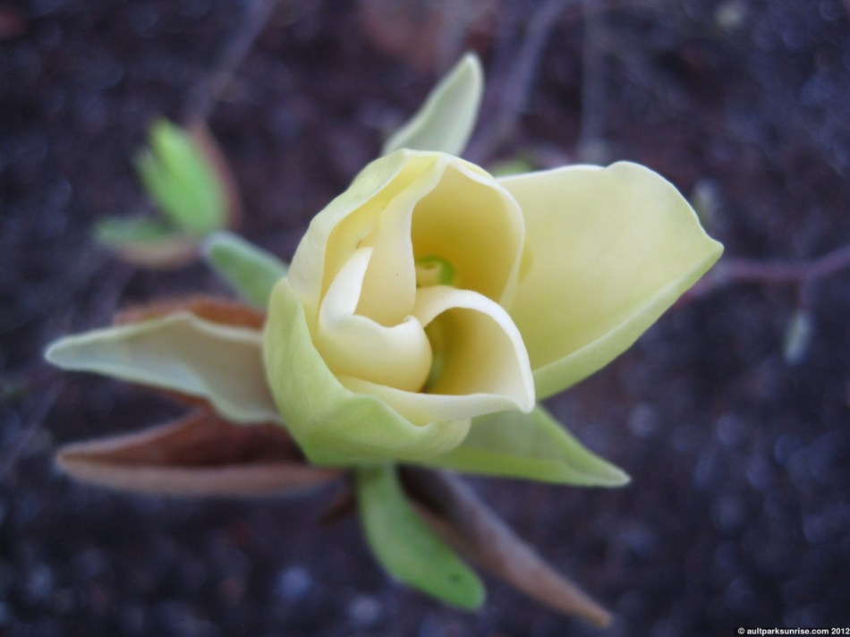 Believe it or not, this is a GREEN magnolia blossom. I’ve never heard of such a thing! I may be mistaken, however, because I can’t find many references to a “green” magnolia on the internet. I’ll check back in at a later date to confirm.