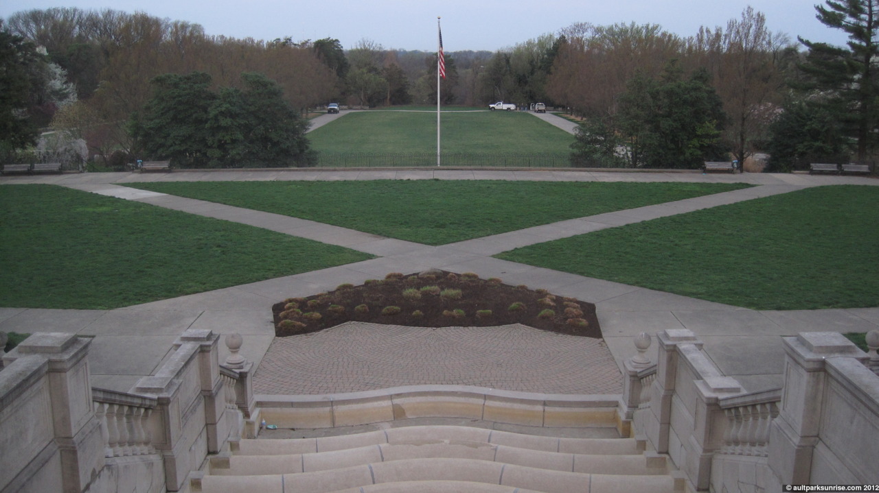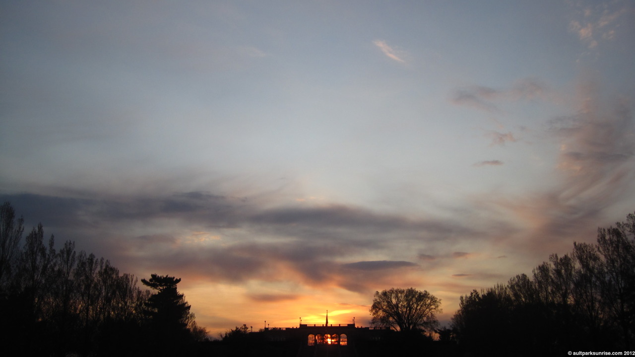 Happy first day of Spring! And also, it’s official. Ault Park (through the symmetrical axis about the pavilion) can be considered to be aligned with the first day of spring. More specifically, it is aligned with the location of the sun about 10 minutes after sunrise on the first day of spring, allowing for a beautiful view down the hill and across the lawn.