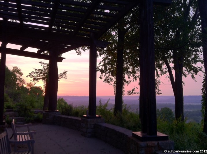 About ten minutes before sunrise I took off from the overlook to the main feature of this morning’s sunrise… the Ault Park Pavilion
