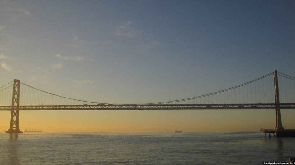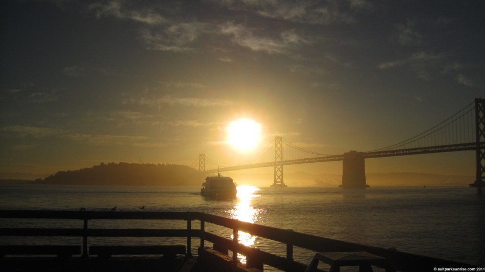 I thought about catching a bus to the bay (only a 15 minute walk) because it only costs $2 and comes with a transfer that I could use for the return route. I ended up jogging to the Ferry Building down market street. I am lucky to be staying so close to the eastern shore of the island that provides a great viewpoint of the sun.