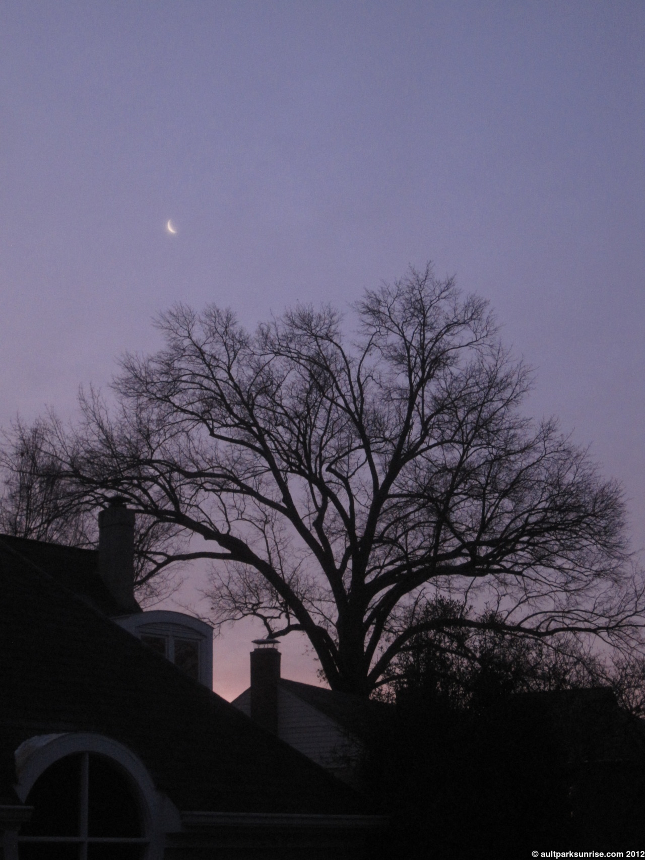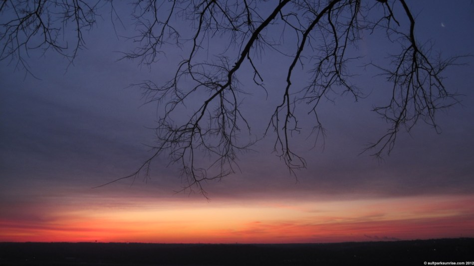 Sunrise 138: Ault Park (Purple and Orange Winter Twilight, a Crescent Moon)