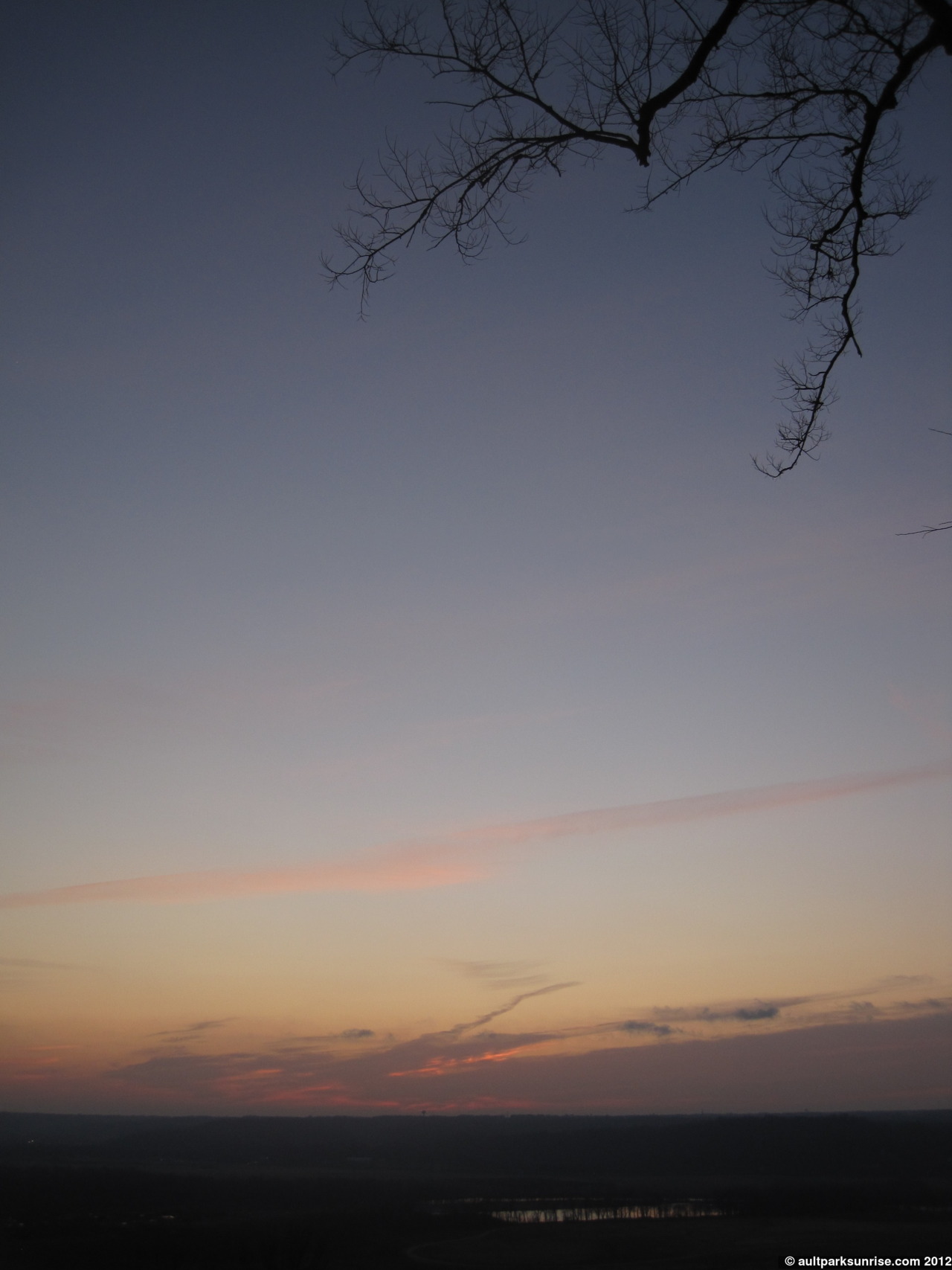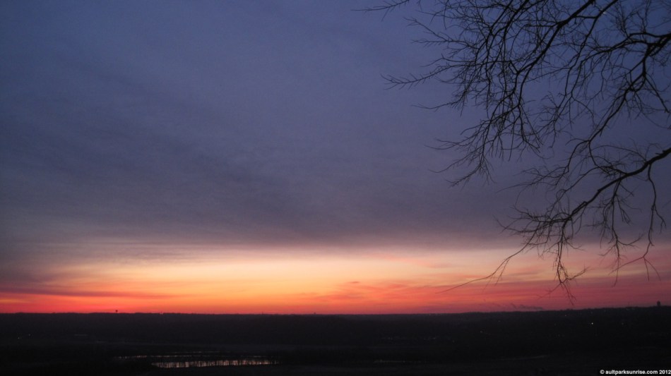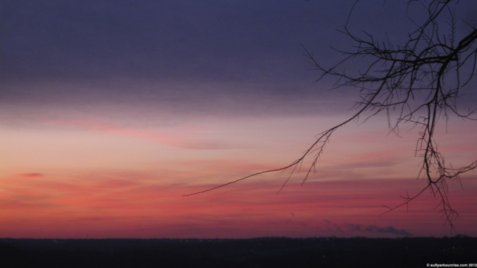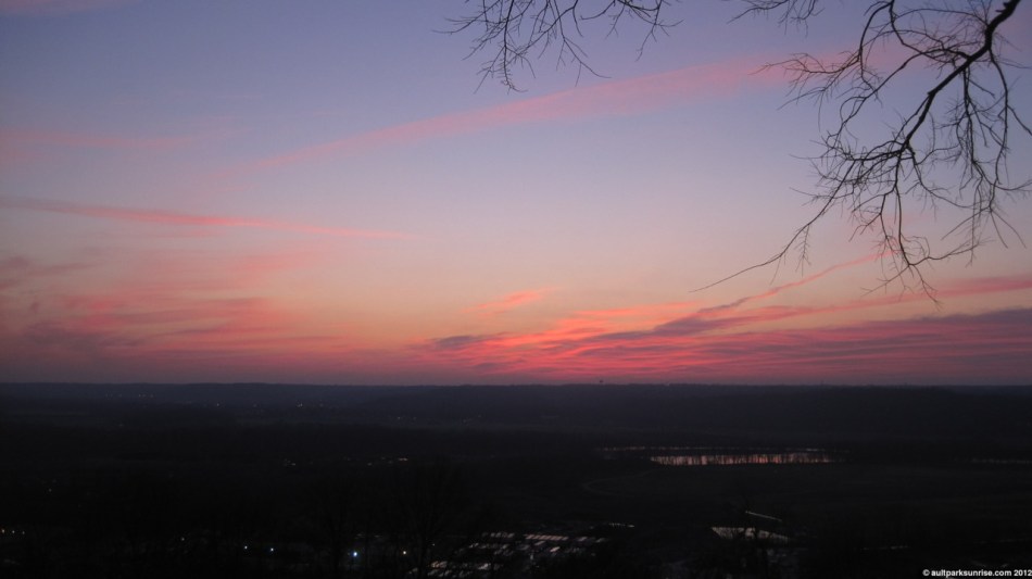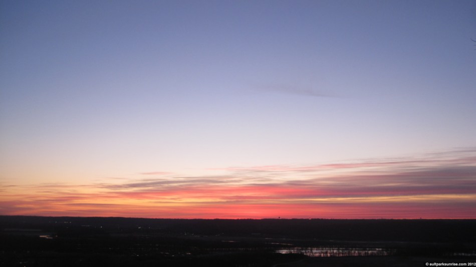 As I came up the hill to the park, I was happy to see that I hadn’t missed the magenta creep. Here we see the atmosphere about 20 minutes before sunrise over the little miami river valley.