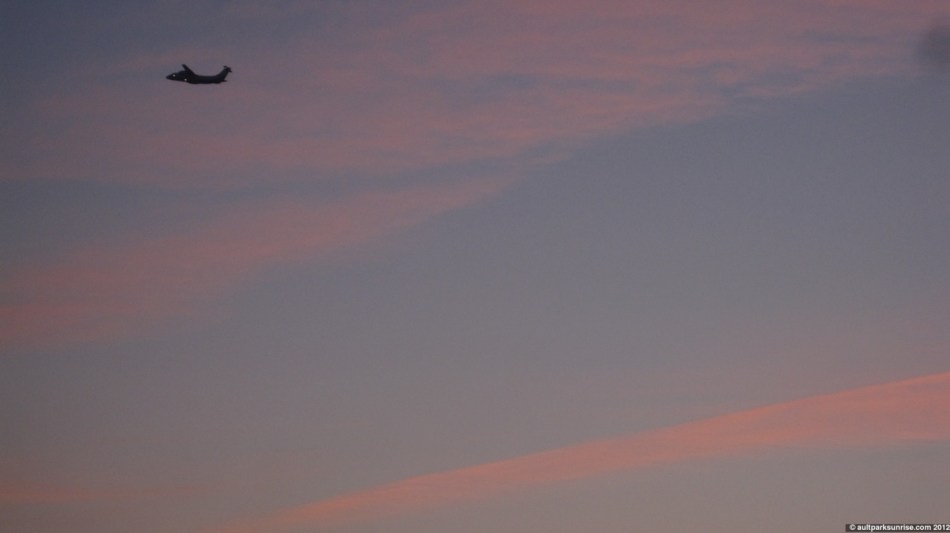 In a heavy humidity atmosphere, the sunrise colors can fade quickly. Lots of vapor trails this morning.