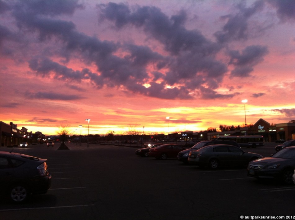 Two of my old roommates have also shared some of their recent sunrise shots. Both Phil and Trent have been commuting by bike, although it’s a bit easier for Trent out in San Francisco to be consistent than it is for Phil and I here in the midwest winter :). Phil’s sunrise is from sometime last week when the weather was breaking and we had a nice magenta display. I’m going to guess it may have been Sunrise 138. Trent has shared two sunrises, both from different days. Trent recently purchased a commuter bike for his new job out in the beautiful city of San Francisco, California. He has kept me up to date (and envious!) of his new morning commute through the parks and bike trails of one of the most bike commuter friendly cities in the US. He mentions that as he leaves for work it is dark out, and by the time he arrives the sun is up. Recently it has worked out that the sun rises over the bay while he’s zipping through of the local parks. Thanks Phil & Trent for sharing!