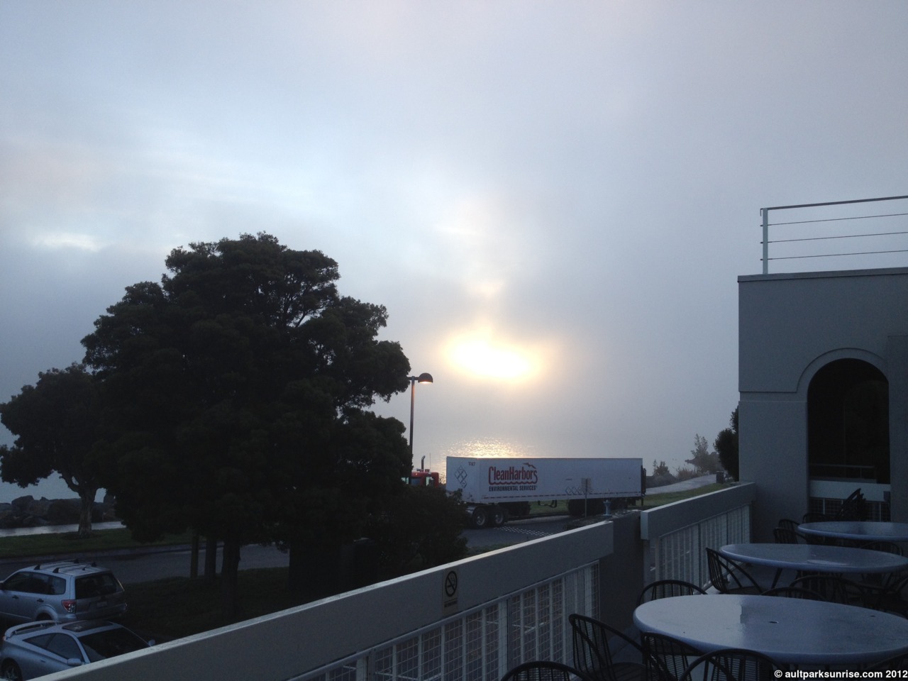 A hazy “First Light” of Sunrise 149. The high humidity, as always, meant that the sun rose a deep orange/purple that didn’t become blinding until a few minutes later.