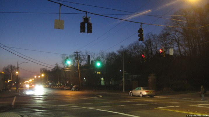 After a week of rain and ice, this morning we finally had a beautiful clear sunrise. There was some intense wind activity yesterday afternoon that preceded a breaking of the overcast conditions in the tri-state area. The weather has held and it looks like we’ve got some great weather lined up for the next couple of days. It was a humid sunrise this morning and this was evident in the late-twilight orange/yellow/gray colors of the haze. The early twilight was another splendid magenta-filled canvas that slowly faded into a dull yellow/gray sunrise that was mostly blocked by a far-off cloud bank just above the horizon.