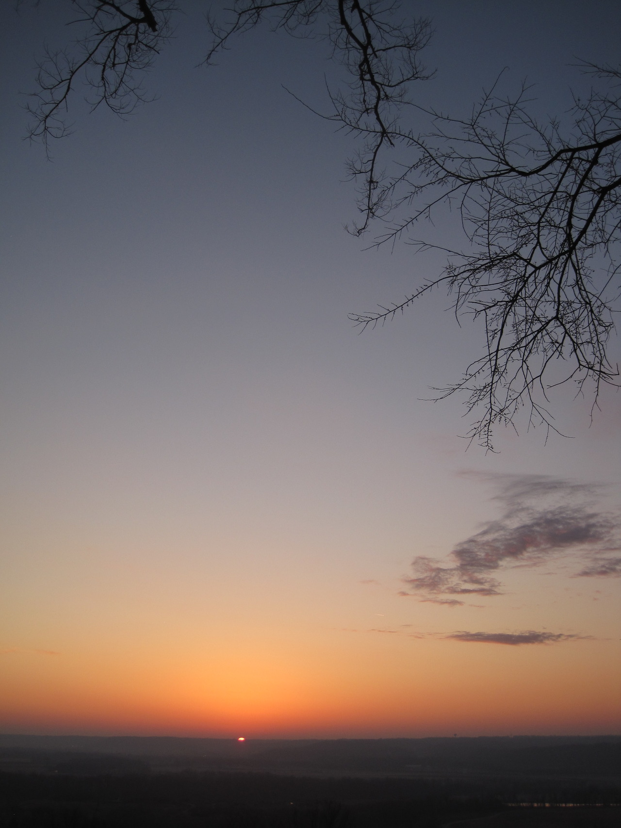 The early twilight colors of Sunrise 138 over the Little Miami River Valley. The thick haze that hung high over head once again broke just above the horizon, similar to Sunrise 137. This time, however, the haze was thin and the opening much larger. My camera had no problem with the lighting today.