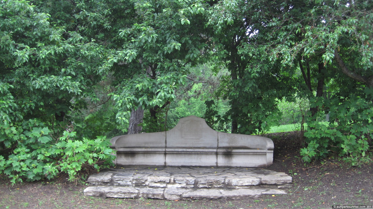 For some context, the park was established in 1911 so that places this monument as perhaps the first structure built after the park’s creation. I believe the pavilion wasn’t built until 1930. This stone bench also lacks the metal plaque that would become the standard sometime in the next few decades, and you can already see that the engraved text is beginning to whither. It was difficult for me to get a picture of the text at all.