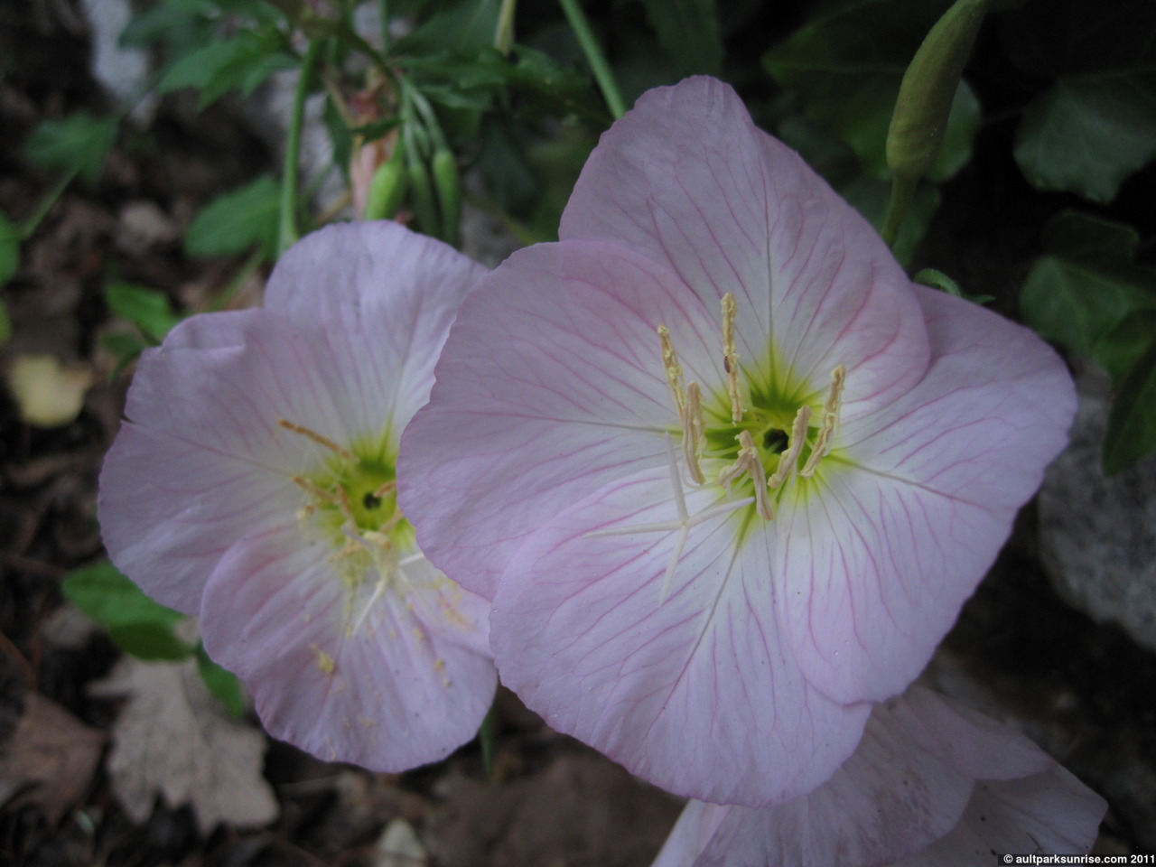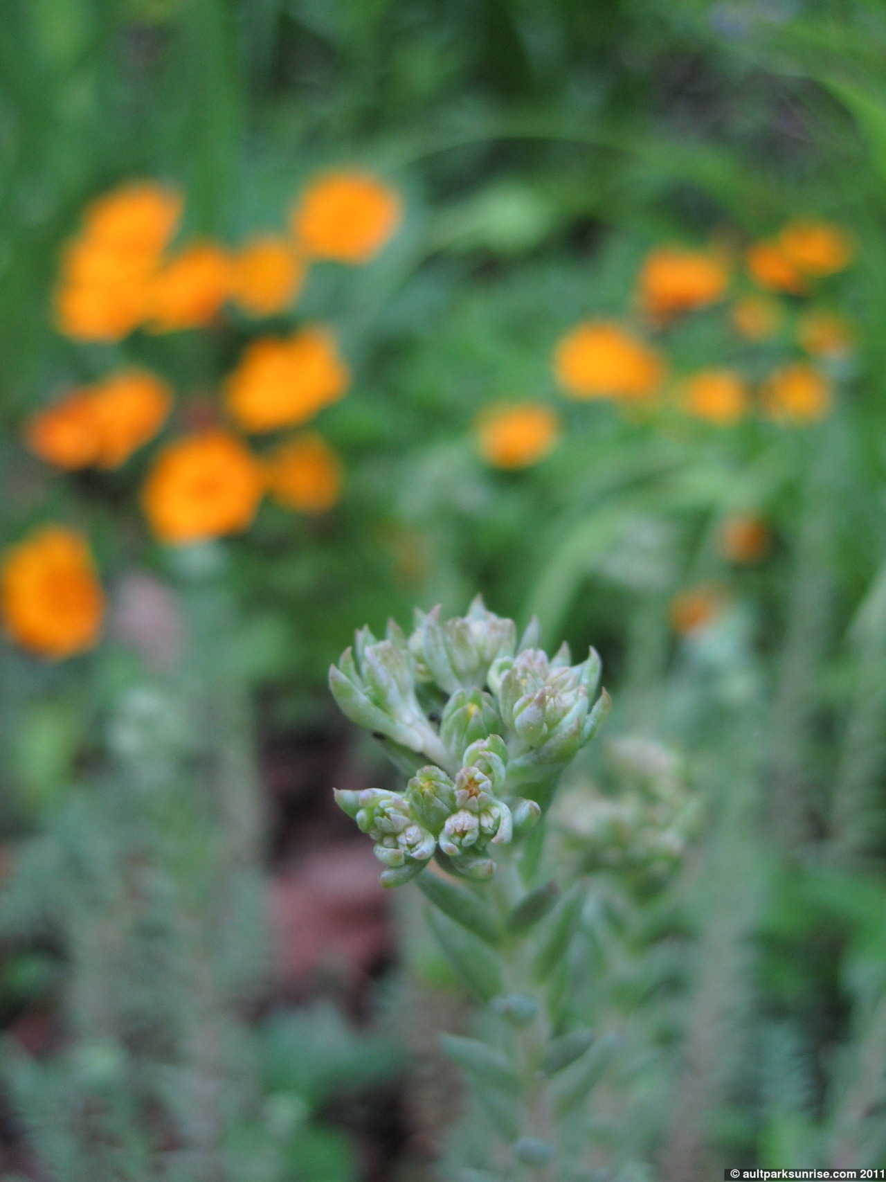 Having seen both the stone memorial and the lightning strike, I found myself quite content with the brief adventure of the morning (by now it is only 7:00am – 35 minutes after sunrise). I head home but on the way I am distracted by a small flower bed that is nestled into the hillside of one of the local homes. The flowers are fresh and new, so I stop to take a few pictures of them. Once again – I have no idea what they are 🙂